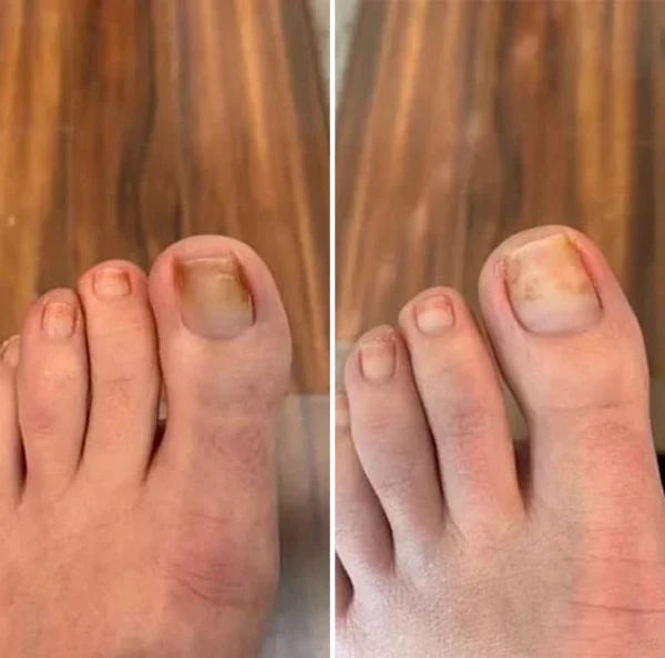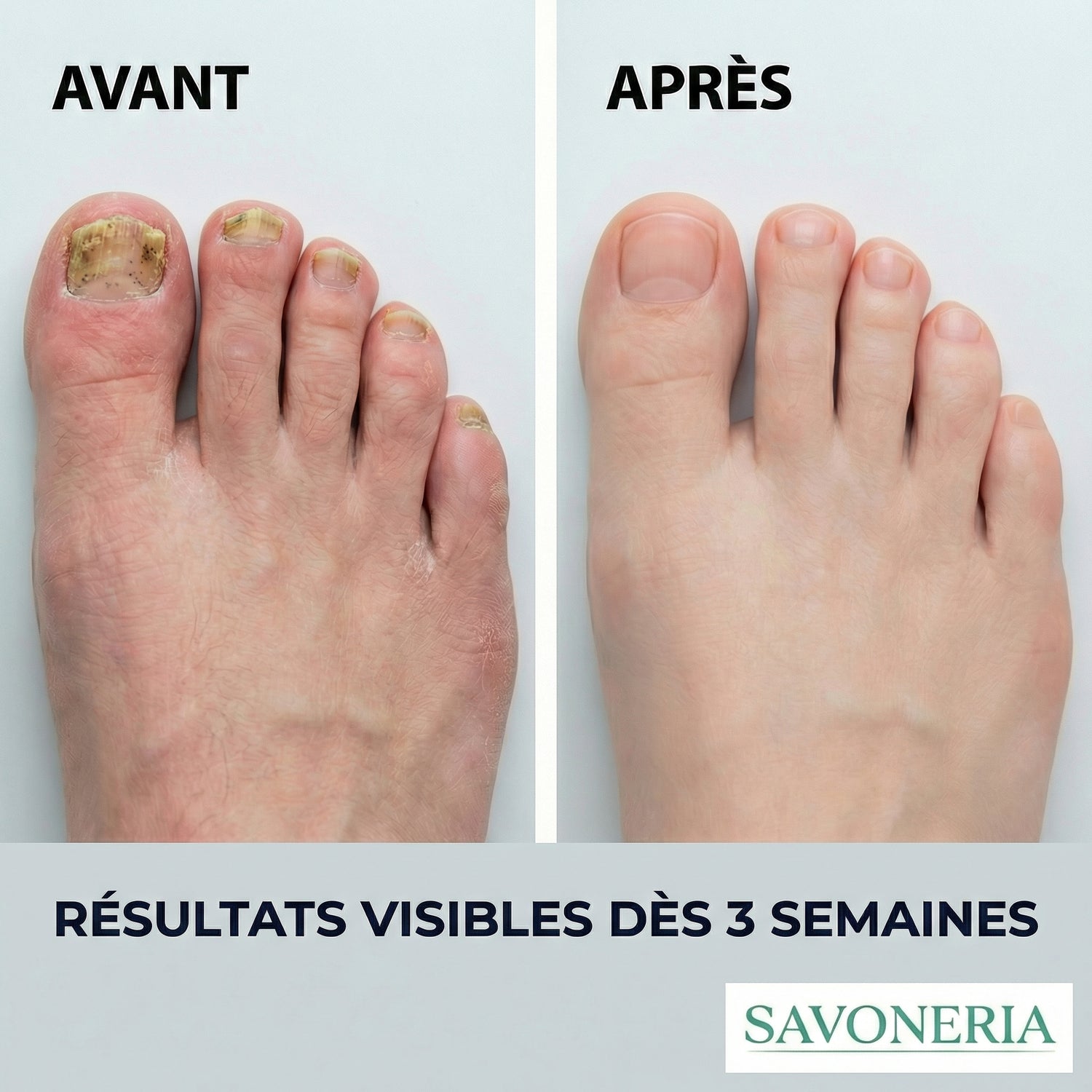 Plus d'odeurs. L'ongle reprend sa couleur. Vous regardez vos pieds différemment dans le miroir.